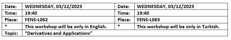 The second of these workshops is on “Derivatives and Applications”. This review will help you with your current course material.