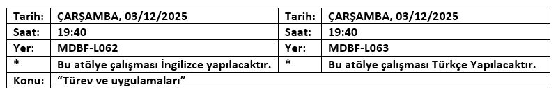Tüm MATH 101 öğrencilerini atölye çalışmalarına katılmaya çağırıyoruz.